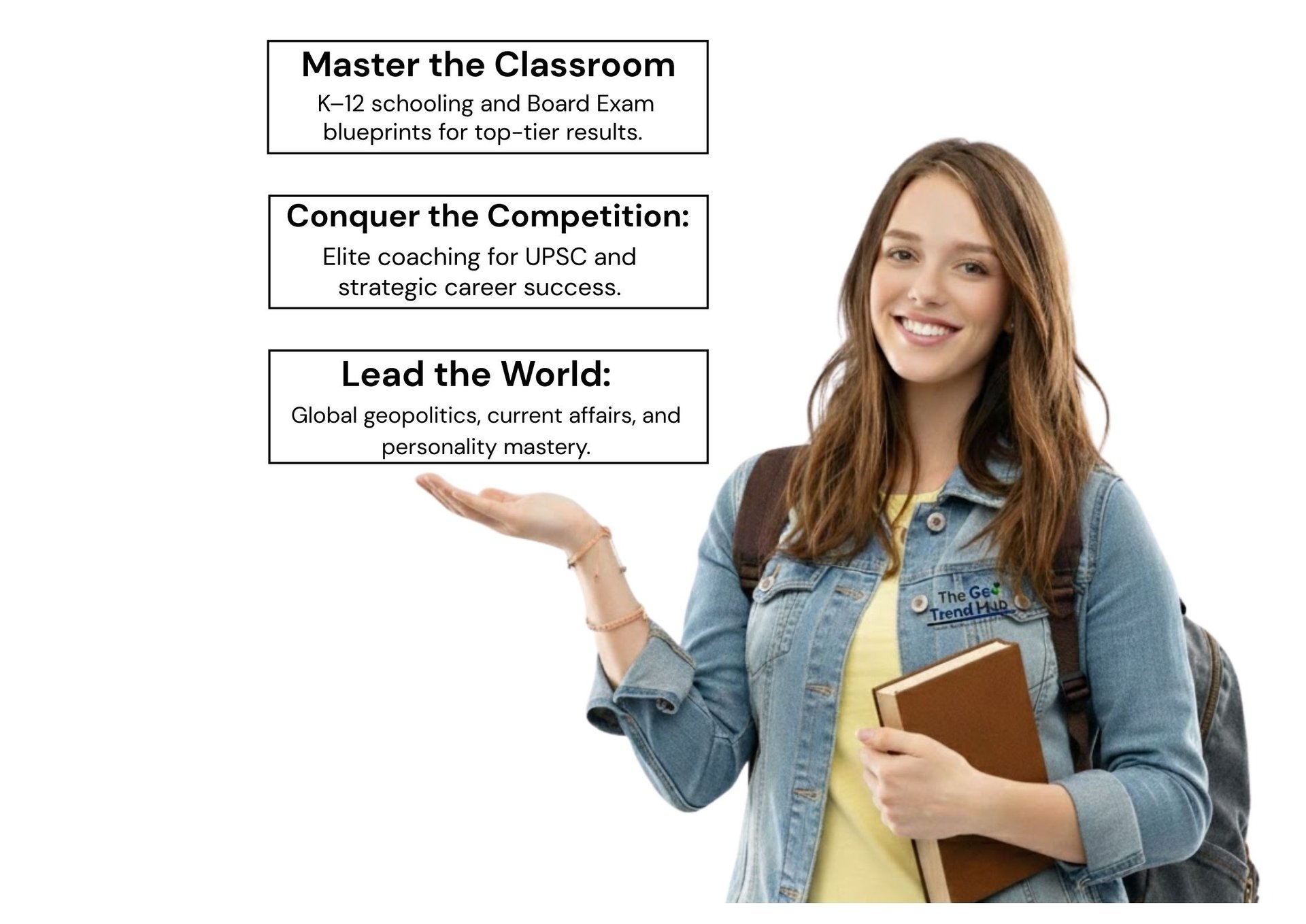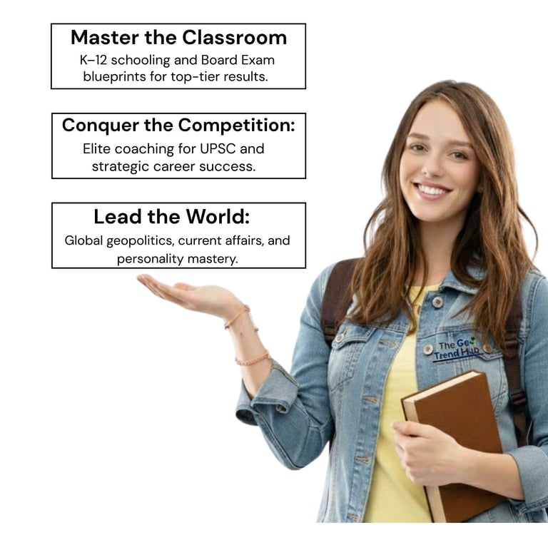 The Geo Trend Hub is an elite educational ecosystem dedicated to bridging the gap between academic theory and real-world global impact. We provide a seamless learning journey that begins with K–12 Foundations, offering high-quality Board Exam Blueprints and strategic notes to ensure classroom excellence. Moving beyond school, we empower aspirants with specialized UPSC and Competitive Exam coaching, utilizing data-driven Strategies and Assessments to secure top ranks. Our platform is uniquely defined by its commitment to holistic growth, blending Personality Development with deep-dive Insights into Geopolitics and weekly Current Affairs. By connecting geographical and economic contexts to modern trends, we transform students into informed, charismatic leaders ready to navigate and shape the global stage.